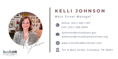 Columbia Main Street is a nonprofit organization, and vendor fees help support the initiatives of Columbia Main Street’s plan of work for the Downtown District. For more information, visit ColumbiaMainStreet.com, follow Columbia TN Main Street on Facebook and Instagram, call 931-560-1507, or visit the office at 713 North Main Street, Columbia, TN.